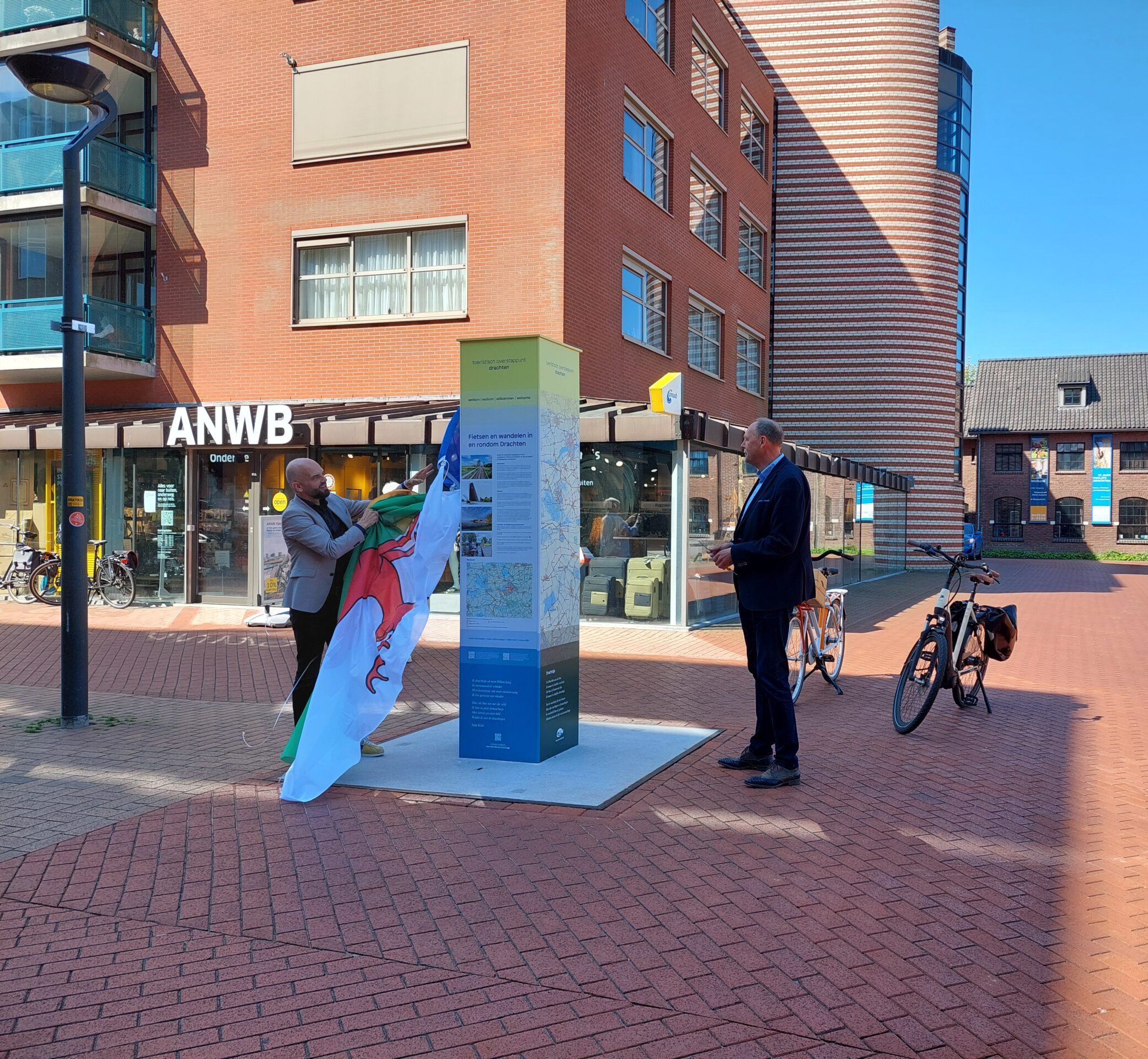Gisteren, 8 mei, kwamen wethouder Sipke Hoekstra van gemeente Smallingerland en Wybren Jorritsma, directeur van Museum Dr8888, speciaal voor de gelegenheid op de fiets aangereden en onthulden samen de gloednieuwe TOP aan het Museumplein in Drachten. Hiermee is de 2e TOP in gemeente Smallingerland een feit (na De Veenhoop).