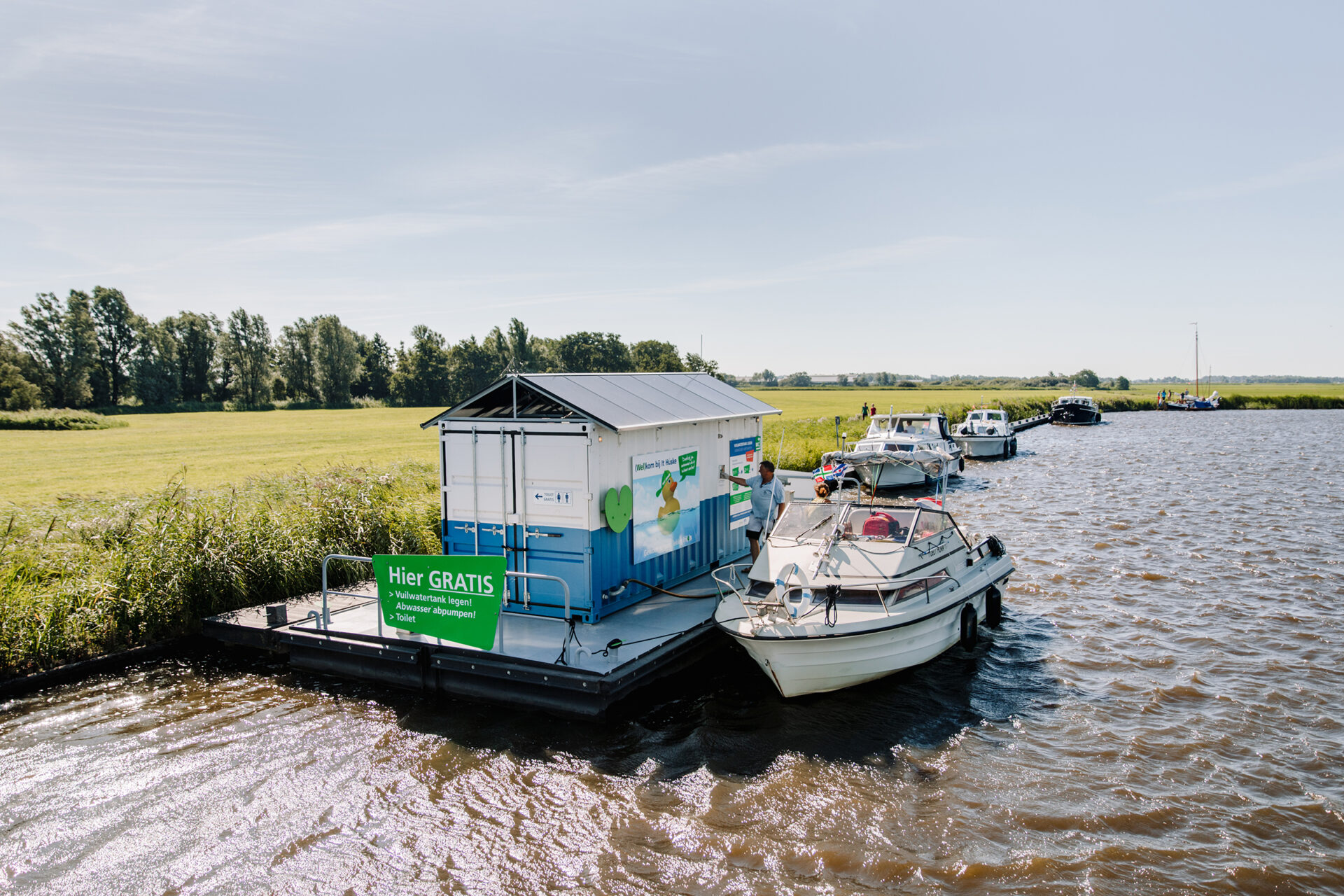 Om de Friese meren schoon te houden, geldt sinds 2009 een lozingsverbod. Toch wordt er nog regelmatig vuilwater geloosd op het oppervlaktewater. De afgelopen jaren hebben wij verschillende maatregelen getest, waaronder het plaatsen van de Húskes. Deze drijvende voorzieningen zijn bedoeld om het lozen van vuilwater tegen te gaan en – dankzij de aanwezigheid van een toilet – ook om overlast door wildplassen en -poepen te verminderen.